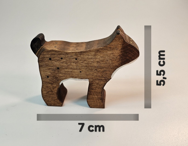 See puidust mänguloom on valmistatud Eestis käsitööna kvaliteetsest kasepuidust. Iga loom on kujundatud ja viimistletud käsitsi, kasutades ainult füüsilisi töövahendeid nagu saag, peitel ja liivapaber. Viimistlemiseks on kasutatud EN71-3 sertifikaadile vastavat linaõlivärvi, mis on lastele ohutu ning jätab puidu loomuliku mustri osaliselt nähtavaks. Kuna tegemist on käsitööga, on iga mänguloom ainulaadne – puidumuster ja väikesed vormierinevused teevad iga eksemplari kordumatuks.